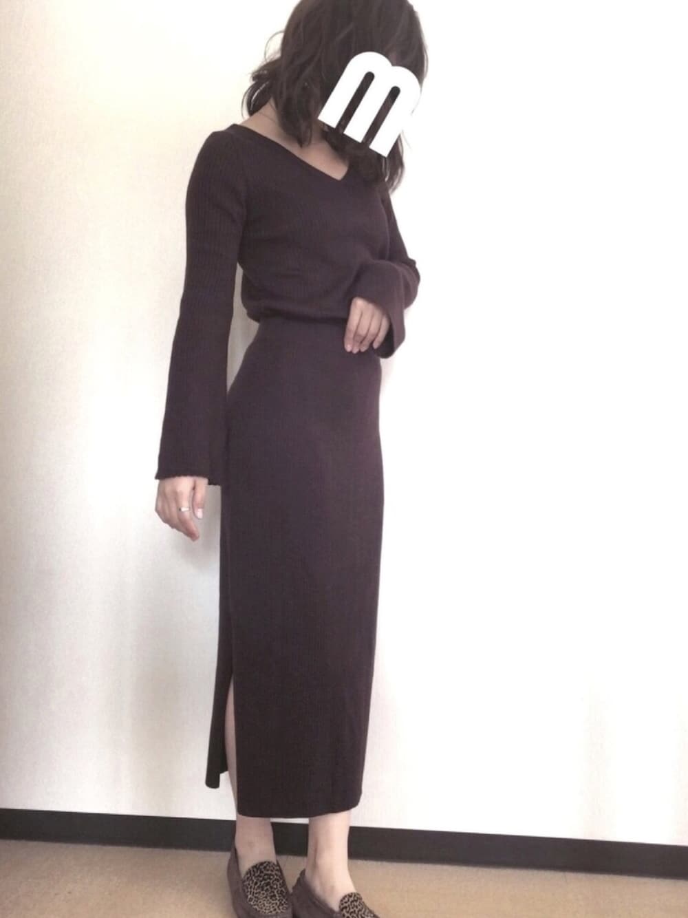 全身ユニクロコーデ(バイトコーデ) キレイめセットアップ ”風” ☁️☁️ . . 上下別々の服だけど生地が同じだから ニットをインしてセットアップ風☁️☁️ スカートはスリットが入っていてどの位置にも持っていけるようにできたデザインで嬉しい☁️☁️ ニットの袖が広がっているのと タイトスカートのスリットで 体のラインが綺麗に見えてお気に入り☁️☁️