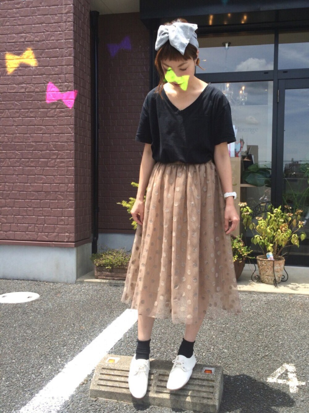 n@omiのヘアバンド「テレコリボンターバン」を使ったコーディネート