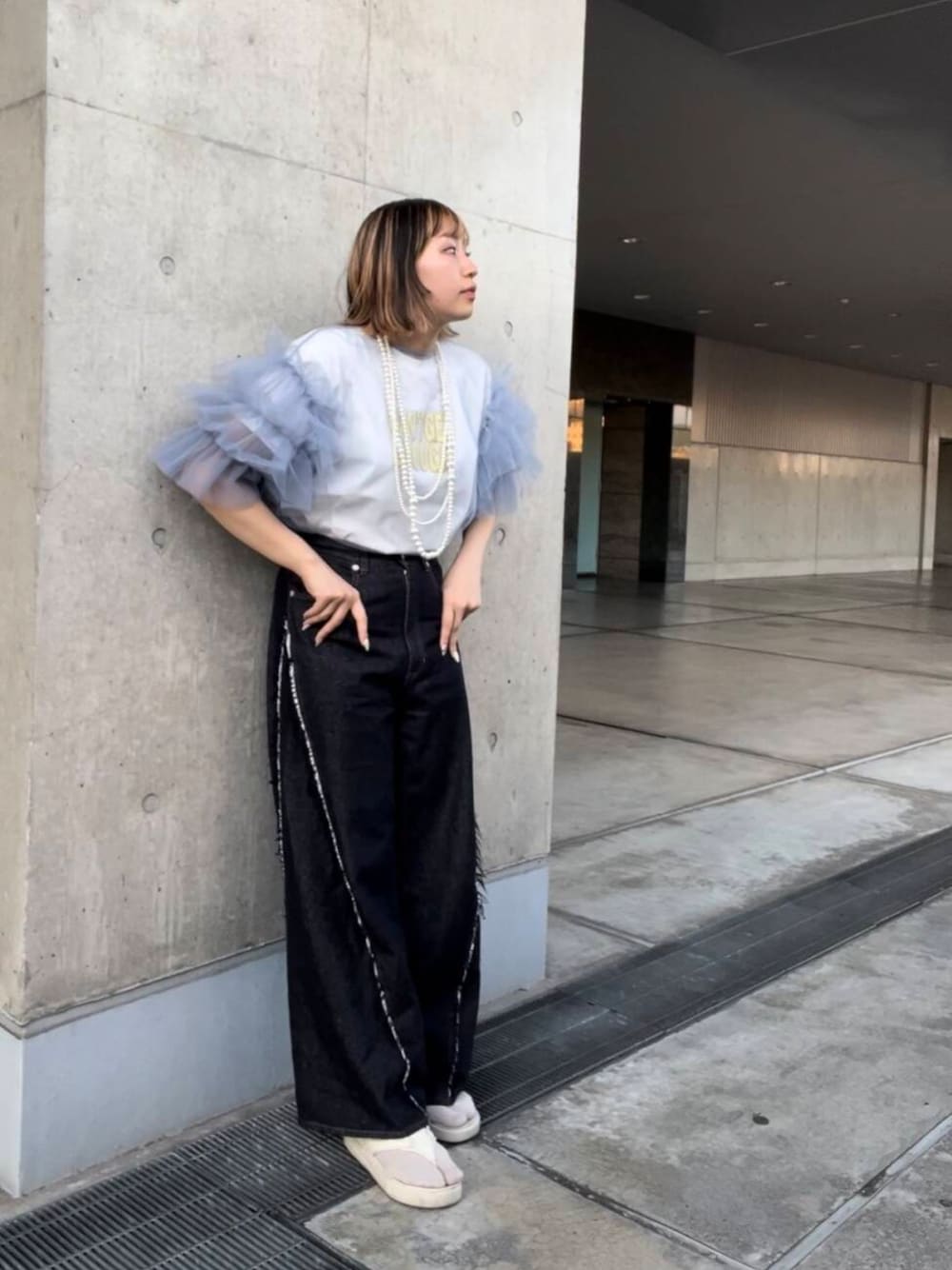 藤井さん。(SMELLY HEPFIVE店)のデニムパンツ「『3サイズ展開』カットオフワイドデニム」を使ったコーディネート