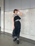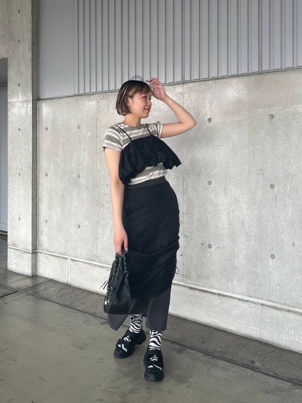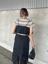 モード感ある大人っぽい個性的なコーデ組んでみました◎ 黒をメインにボーダーのTシャツを入れることで夏でも明るい印象に😌 ビスチェはオフショルダーでも使えるので2wayで着回しできちゃいます👼🧡