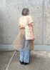 個性派レイヤードコーデ組んでみました◎ チュールワンピにベルトを重ね付けすることで、ウェストマークで膨張せず、スッキリ見せれちゃいます⭐️ 夏の暑い時期でもチュールの重ね着で一気にオシャレ度up&個性派コーデの完成です!!