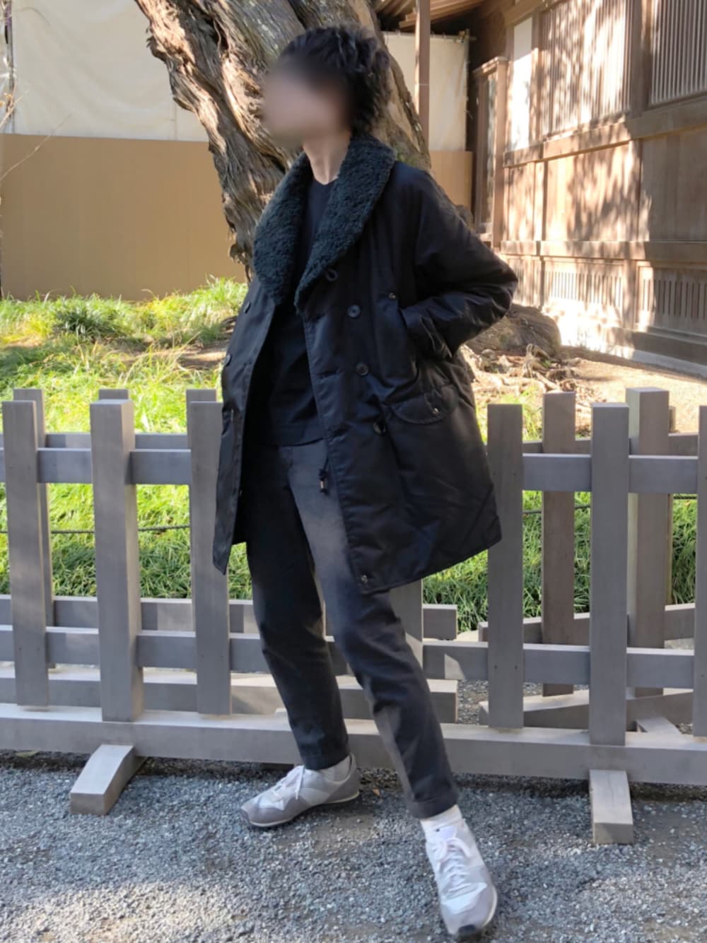 カットソーの上にヘビーアウターを乗っけただけ。 これで首まで留めるともうマフラーすら要らないのである意味つまんない(笑) アイテム名はN-3B COATですがマッキーノコートというPコートに似た形のコートです。こういった大して手入れが要らないのばかりついつい買うし着てしまう。1年前のモデルですが、最近ボアとか流行りっぽいし honor gatheringのパンツもコットンの楽なやつ。去年一番履いたし今年も出番が多いです。honorのパンツの中では一番細いかも。