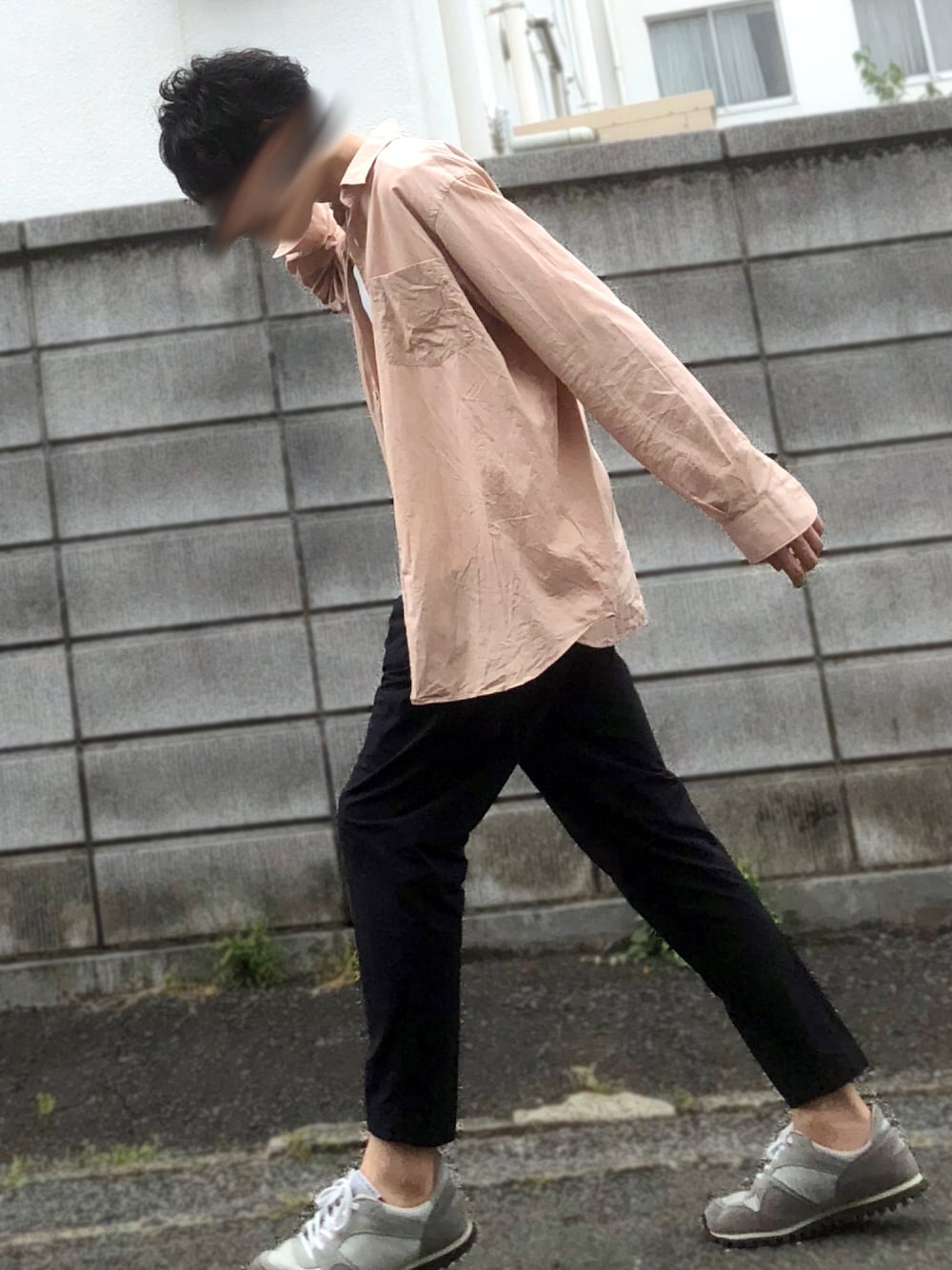 一つ前で寒色がどうの言っていたくせにサンドピンクのコモリシャツ。 このあと雨に降られました。一応濡れても問題ない恰好してたつもりでしたが本降りには敵わない。 そろそろ載っけるスニーカーにバリエーション欲しいですね。