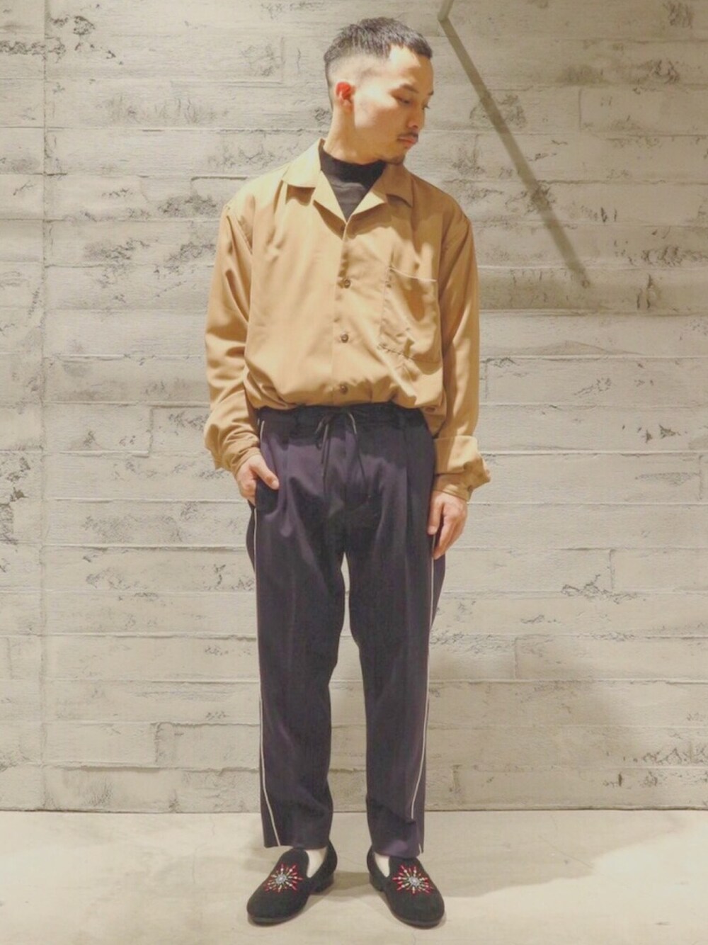 こんばんは! いつもご覧いただきありがとうございます! 本日は新作開襟シャツを使ったスタイリング。 サテン生地という目新しい素材によって ブラウンのきめ細かな渋みが光ります。 今年らしくラインパンツに前だけインして 靴をアフリカンテイストにする トレンド欲張りスタイリング。 こちらのシャツ、 まだ数量限りありますが ございますので、 是非HARE店頭にてご覧ください! お待ちしております!