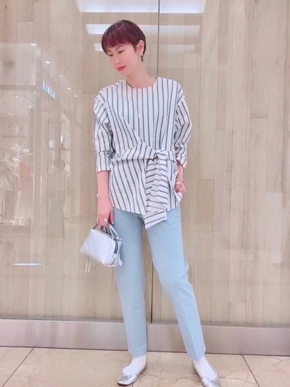 アバハウス オンラインストア 15%offしてまーす😆 フロントにデザインのあるストライプシャツは着るだけでサマになって嬉しい✨ストレッチ抜群のブルーパンツと合わせた爽やかコーデでお出かけしたいなぁー🌈