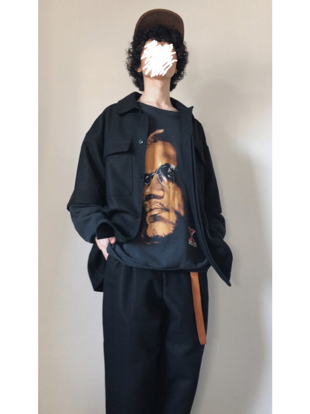ブラック系のスウェット、ブラウン系のキャップを着用したメンズの冬コーディネートの1枚目の写真