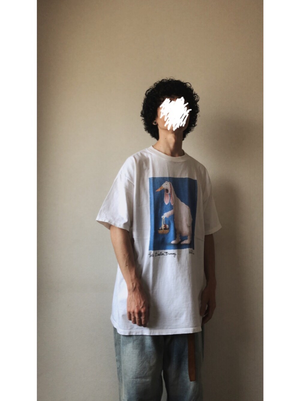 ホワイト系のTシャツ/カットソー、ブルー系のデニムパンツを着用したメンズの夏コーディネートの1枚目の写真
