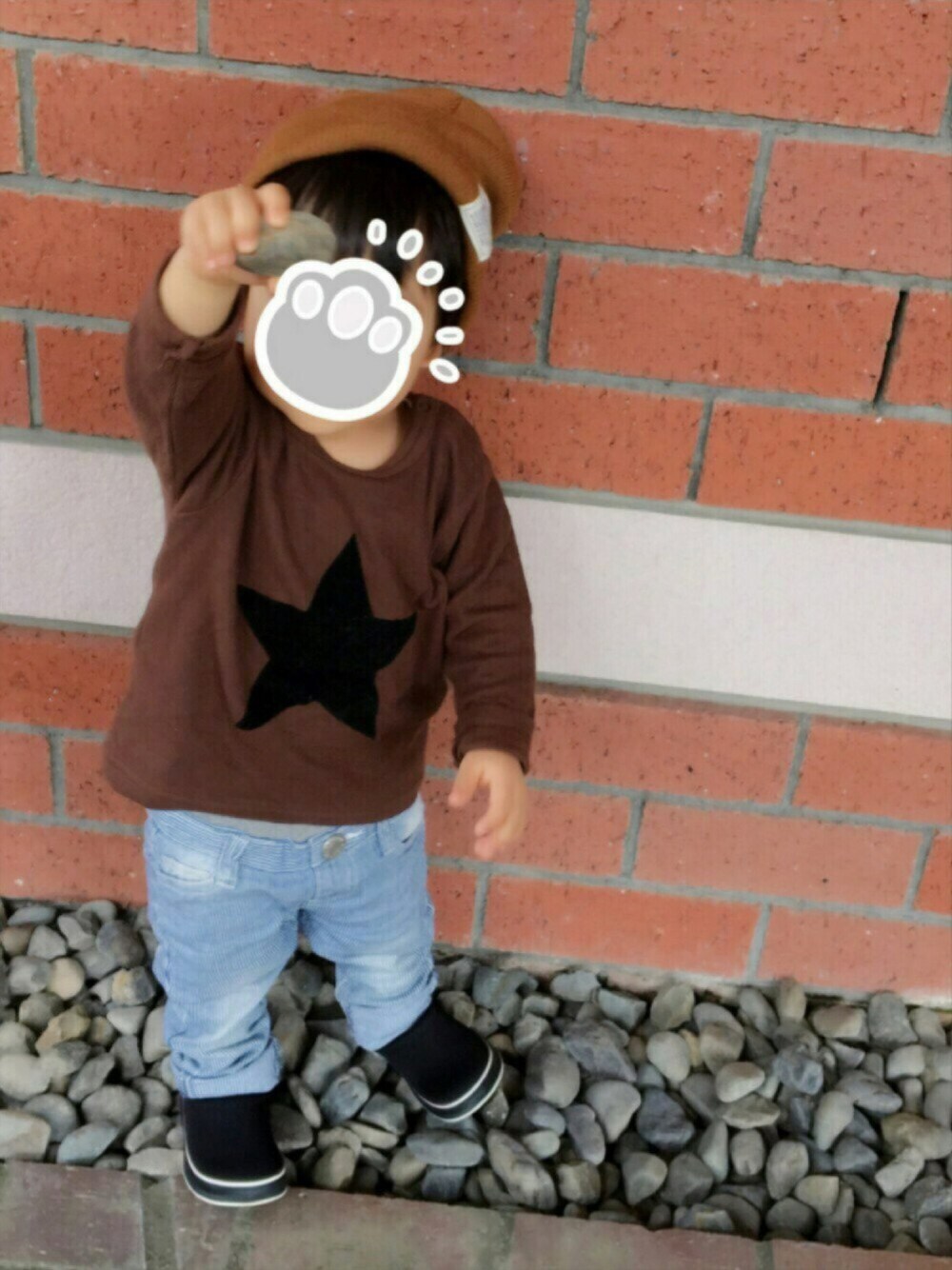 昨日は初めて着たもの履いたものづくし。 じじばばからもらったスリッポンも初めて。 トップスはおととい買ったもの。 パンツはオシャレな従姉の見たてで買ってもらったもの。色落ちがあって、ちょっぴりヴィンテージ感。 昨日は夫側のじじばばに顔見せに行き、公園に寄りました。 公園内の博物館の階段を上ってしまい、博物館の二階で石を拾った写真💦 前はよちよち歩きだったけど、今はすっかり走り回って、しかも速い!! 広い場所を走れてとっても楽しそうでした♡