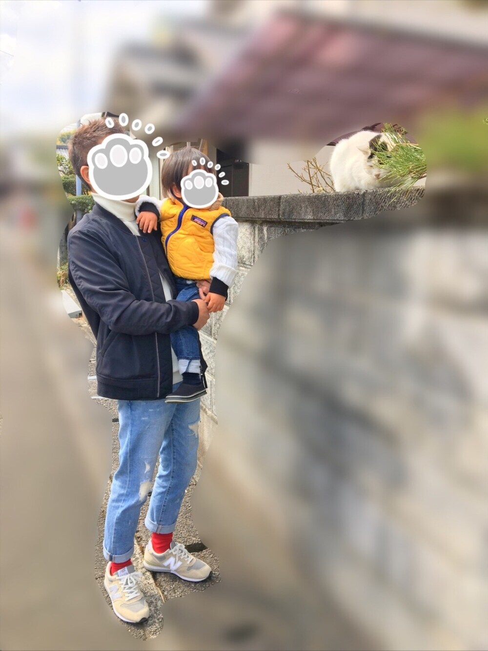 じいじとネコちゃんを見つけたよ。 お墓参りをしてきました。 じいじは前載せたときとほとんど変わらないコーデ。(^^;; 今日昼間はベストで過ごせました♡ じいじ‥身長163cm 子‥85cm、トップスS、ボトムス100