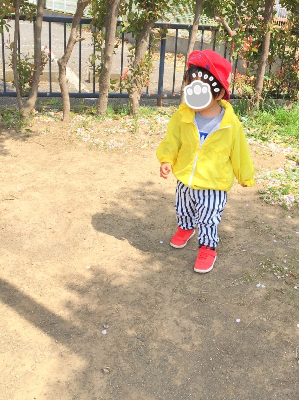 公園、着回し♫ お金貯めたいので、着回しがんばるぞ(๑˃̵ᴗ˂̵) 赤を差し色に、上下にはさみました。 風が強かった💦 このユニクロの黄色パーカー、風強い日にも風通さなくて、安心♡