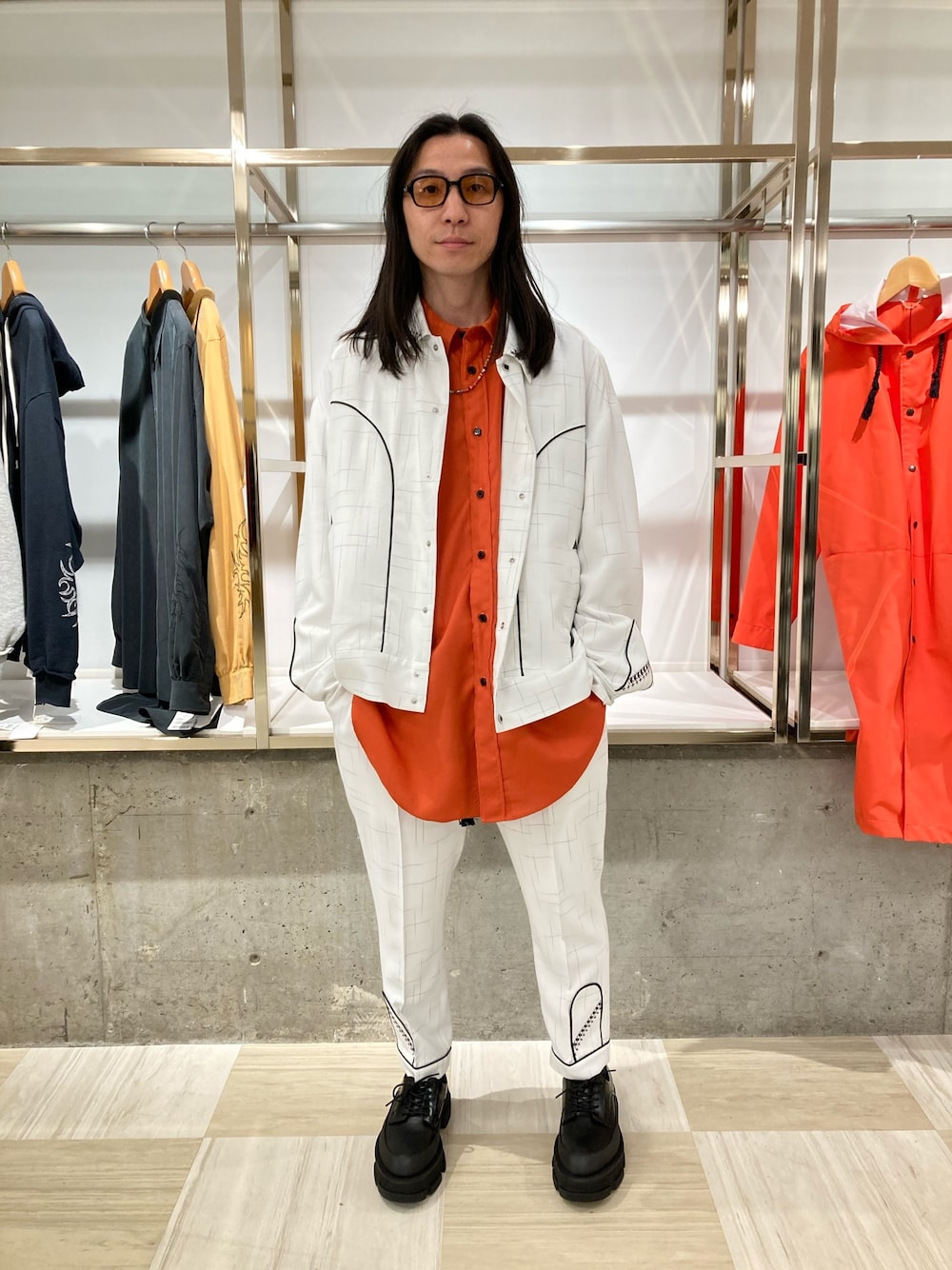 fujisakiのサングラス「BLANC.. “B0023/BLACK-ORANGE”サングラス」を使ったコーディネート
