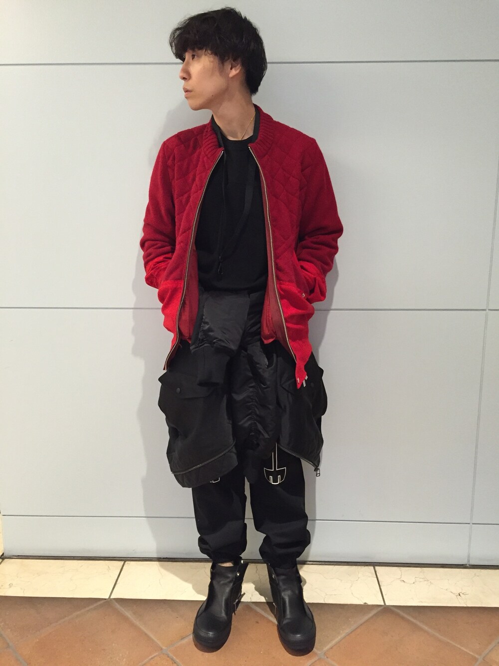 『sacai』の真っ赤なアウター第②弾💥💥 ニット切り替えも最高です‼️ お気に入りの凸凹スタイル👻