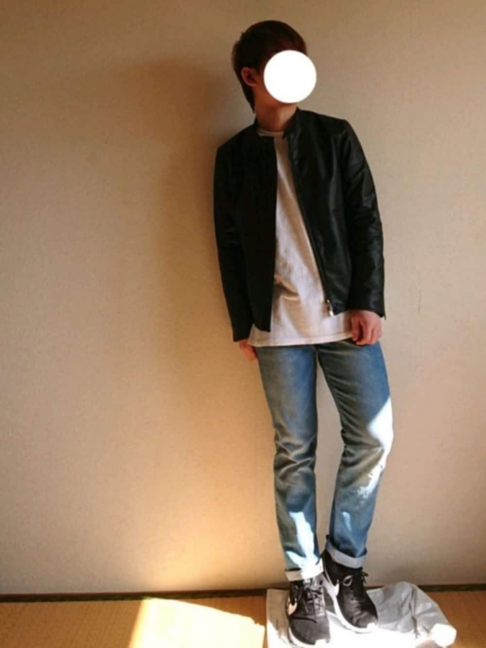 このジーンズシルエットが微妙な所が絶妙に可愛い😍 男らしいライダースのイメージをカジュアルなアイテムを使って和らげてみました💁