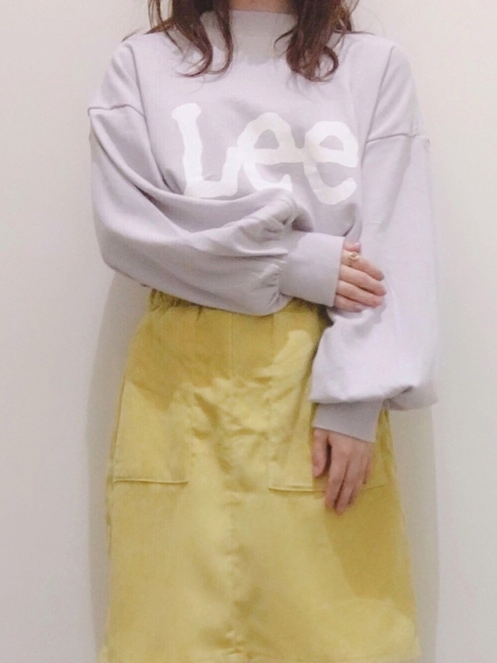ついに…Leeコラボの春の新作が出ましたっ💕💕 スウェットとパーカーが入ってきたので 本日はスウェットで📸✨ 爽やかなイエローのコーデュロイスカートと合わせてみました!🥰