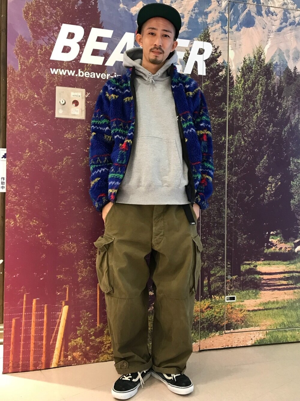 Junpei Fukadaのキャップ「MANASTASH × EBBETS FIELD FLANNELS ACID DENIM CAP/マナスタッシュ」を使ったコーディネート