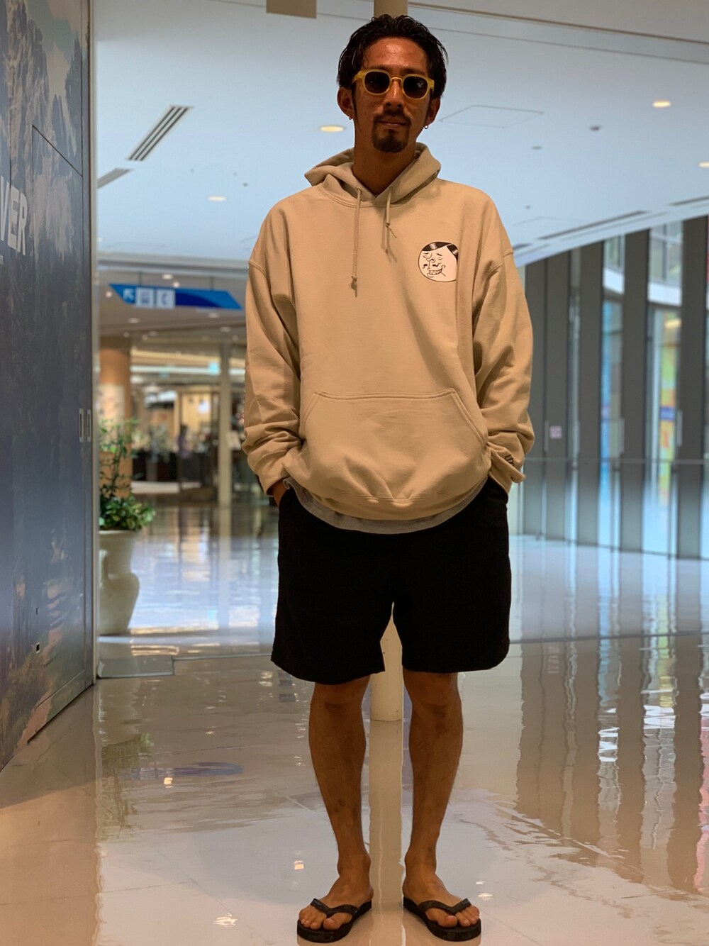 フーディー、ショーツ、ビーサンが良い☀️