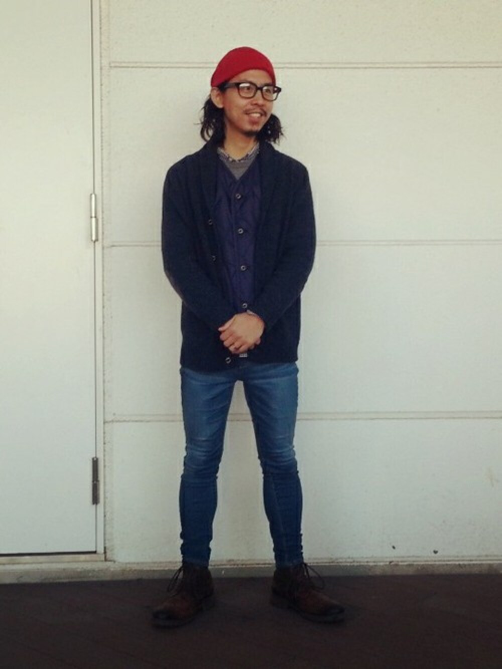 fukaeのニット/セーター「5Gシェットランド風ショール衿JK」を使ったコーディネート