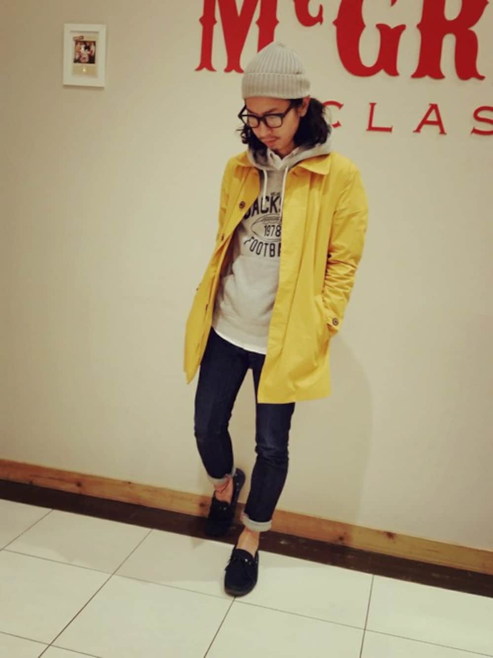 トレンドカラーのイエローのステンカラーコート。 使い勝手抜群です。