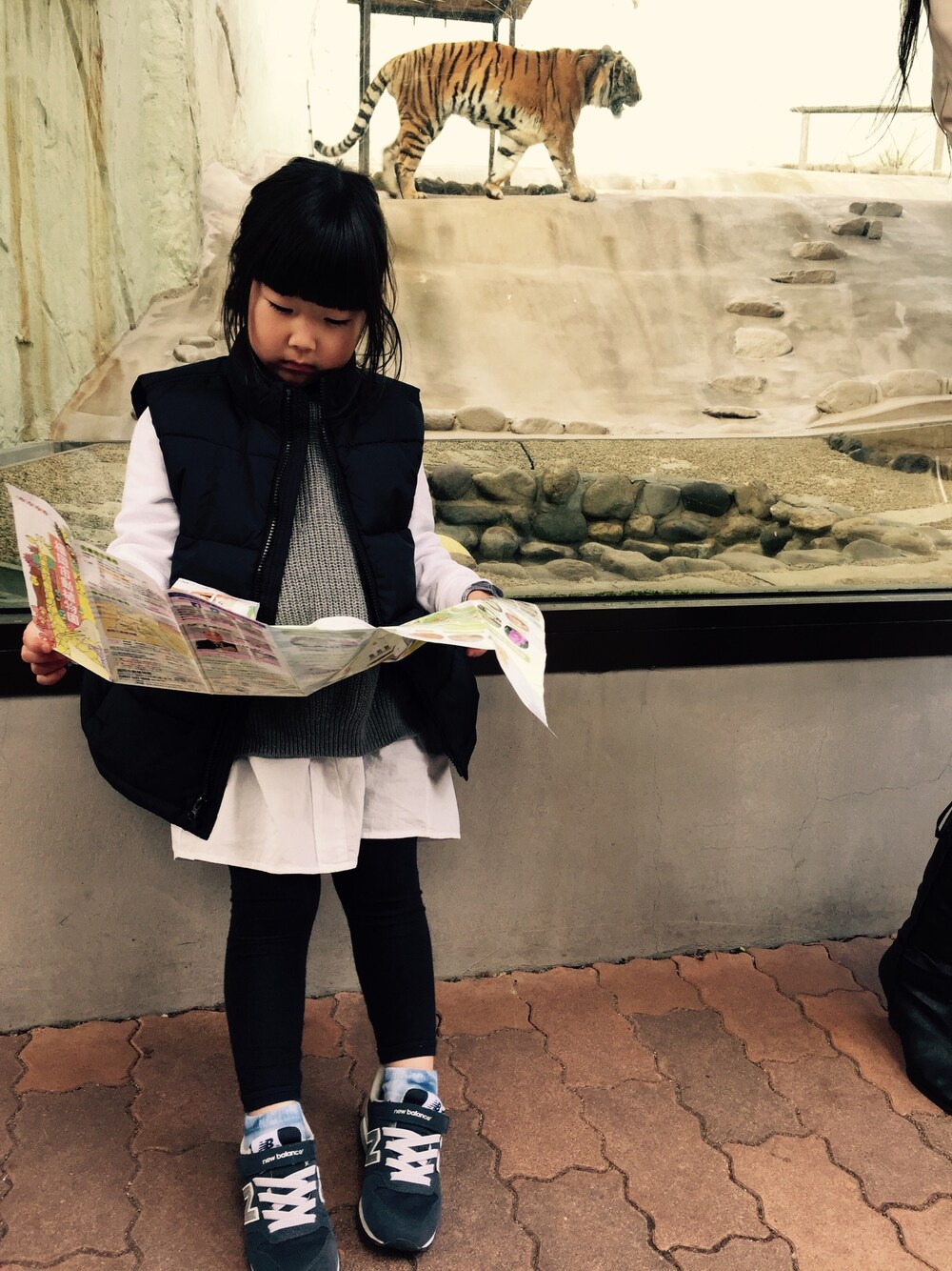 福岡市動植物園!トラではなく地図に夢中。うそでしょ