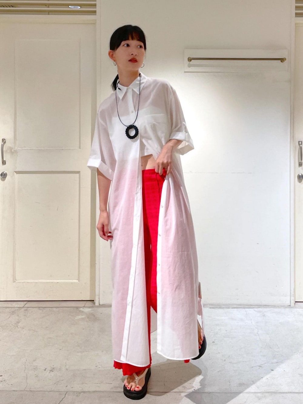 【トップス】F 【インナー】F 【ボトムス】F 【シューズ】37 pants Pheeta. No.SBS53010 60 サイズフリー ¥22,000taxin 30%OFF → ¥15,400taxin accessory NOBUKOFU No.SBZ63420 01 ¥17,600taxin シャツワンピースはシアー感があり、薄手で柔らかく、夏のワンピース、羽織りにぴったりです! Pheetaの赤パンツを差し色に♡ 合わせたあとに思ったのですが、どう見ても色合わせが巫女さん。足元もあいまって、巫女スタイルでした。笑