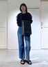 REDCARDのmanoaを使ったスタイリングです! 股上が深く太めのデニム! シルエットがとても綺麗でスタイルアップ効果があります! 是非チェックしてみてください♡