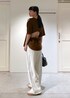 DELIYのデザインTシャツにCreamyトラックパンツを合わせました! 足元にはSAMBA XLG。 バッグはAULENTTIミニボストンバッグです♡