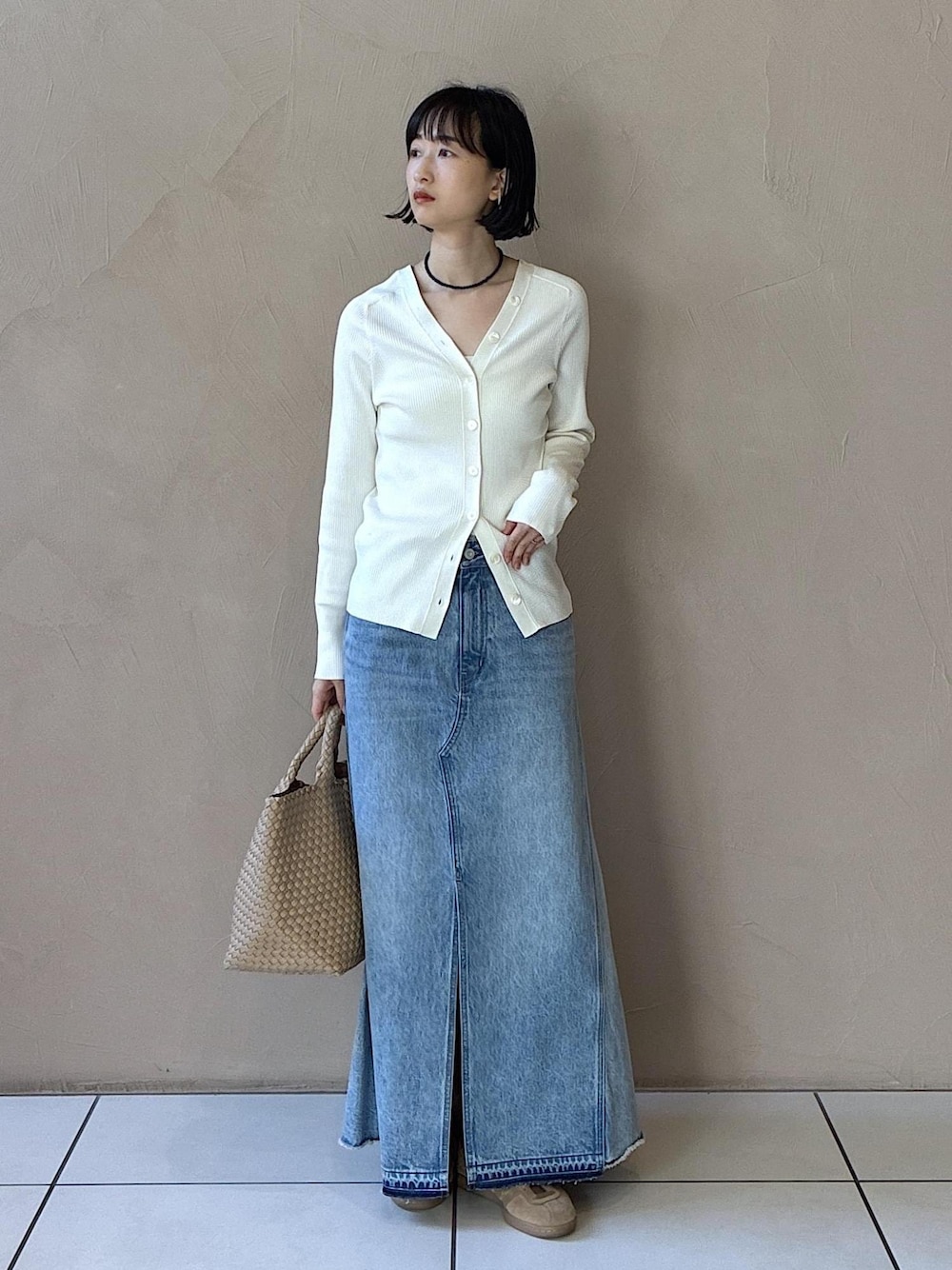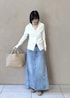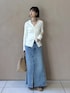 WEB限定のリメイクデニムスカートとシルク2wayカーディガンを合わせました。 白とブルーで爽やかだったので 足元はadidasのtabacoにでちょっと崩してみました。 プライベートでも履いているスニーカー。 スタイリングのアクセントになって好きです。 是非チェックしてみてください。