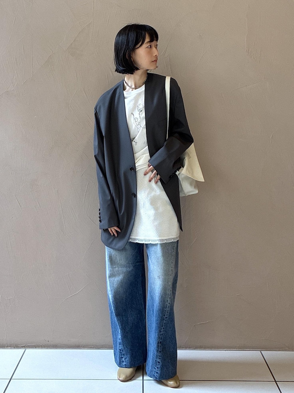 コラボTシャツを使ったスタイリングです。 イラストがさりげなくてかわいいです♡ レギンススカートのスカートだけデニムと合わせてレイヤードしてみました! 【Angie La La Vintage Remake Items Release 】 SALON adam et ropeがセレクトしたヴィンテージレースを使用したリメイクアイテムを、Angie LaLa監修で制作しました。 4月2日(木)コラボレーションアイテムの発売にあわせて、SALON adam et rope各店舗にて展開します。 すべて一点ものとなる、唯一無二のアイテムを取り揃えています。 ーーーーーーーーーーーーー jacket BOWTE SBL56070 06 1 ¥106,700taxin ーーーーーーーーーーーーー