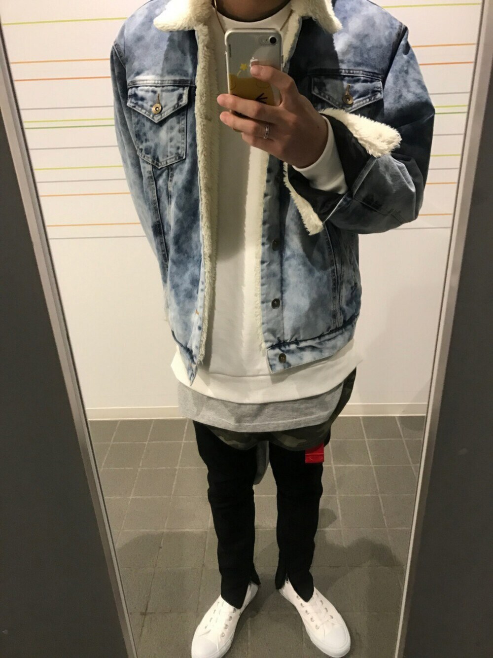 ひとりでぶーらぶら✌🏻️ 今日のコーデは自分で満足したのでおっけー✌🏻️✌🏻️✌🏻️ このボアジャケットブリーチ感と防寒機能半端ないです🔥 インナーのトレーナーはブルズでなんとレイヤード付き😎裏起毛でとってもあったかいです😂 その中に来てる迷彩柄のシャツは訳もわからん通販で安かったやつ👌🏻 パンツは流行り?の裾のうちっ側にチャックがついてるやつです👌🏻 そして今日の主役のコンバースちゃん❤️ これはあのかの有名な「柿本商店」で買いました。ただの白ではなく、マイブームの光るやつです!!! 光当たったり、フラッシュ焚いたりすると ラインとかマークがチカチカするんです!!! ただ白ってので汚れてしまうのであまり履きそうにもないですが… てな感じで今日の服の紹介しでした! やっぱり自分は日本語力が乏しいです。 これからもどんどん私服投稿してくんで 良かったらフォローおねがいします!! コメント、いいね、セーブもポチポチしていってくだはい!