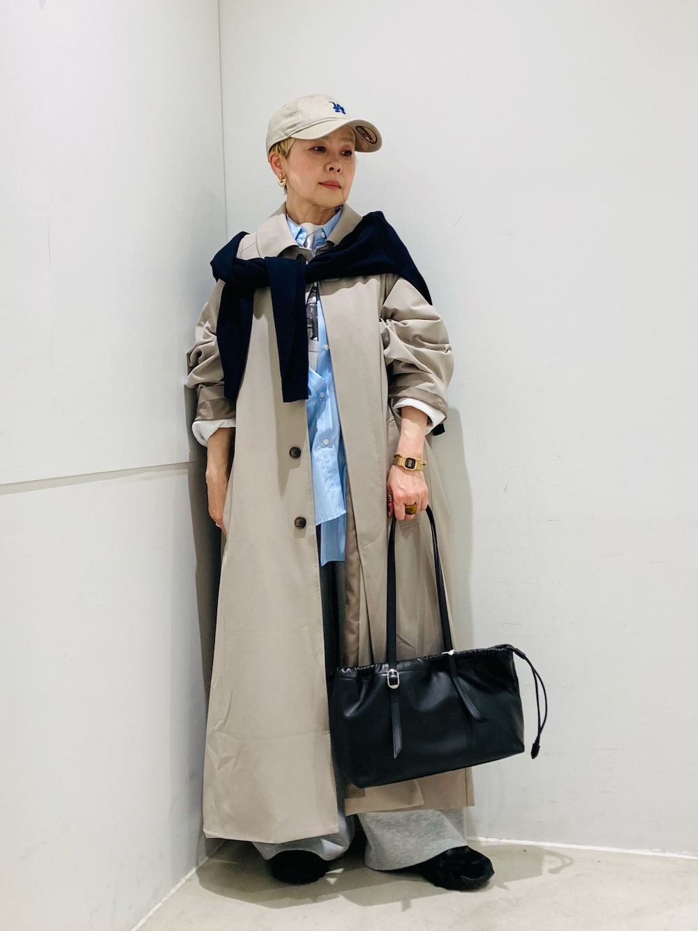 ご覧いただきありがとうございます😊 朝晩,日毎の寒暖差に使えるロングコートは、軽くて素材の落ち感がきれいです! メンズですが、ゆったり長めに着たい方にも👍 パンツは、スウェットのストレスフリーな着心地なのに、きれいめシルエットでオススメです! ロンT,ストライプシャツ,肩がけしたニットは、どれも着まわし力高いアイテムです👍 良かったら店頭でご覧になってくださいね☺️