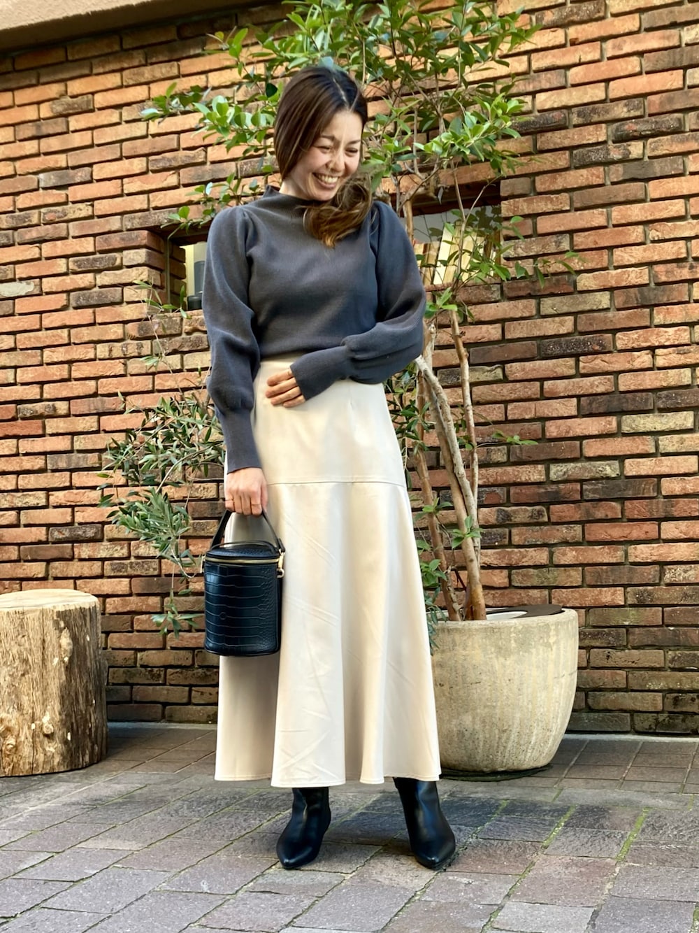 ✳︎fuku✳︎のニット/セーター「バックボタン片畦パフニット」を使ったコーディネート