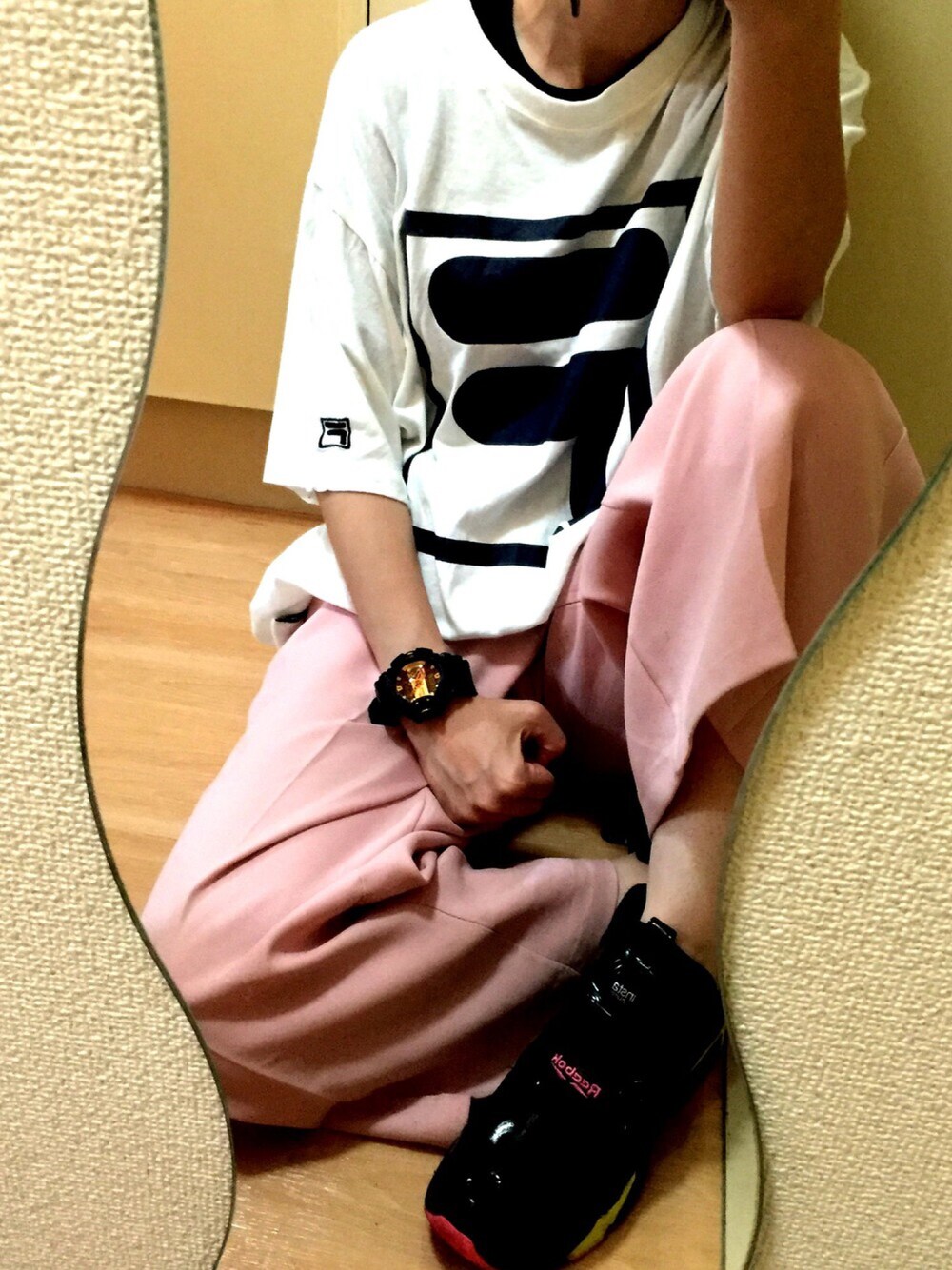 スポーツMIXのラフコーデ👻 FILAのTシャツはしまむら しまむらパトロール🚓 ピンクのワイドパンツは楽天でGET👖 スニーカーはreebokのポンプフューリーを愛用👟