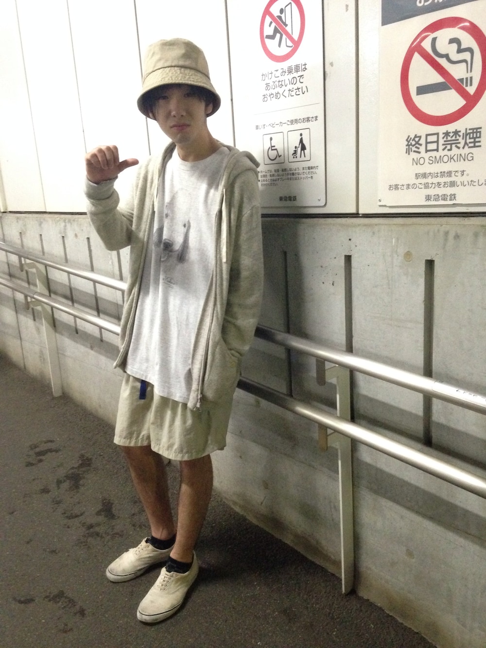 バケットハット/ used/ valon パーカー/ cash ca Tシャツ/ used/ mecha ナイロンショーツ/ used/ iroha くつ/ yasumn