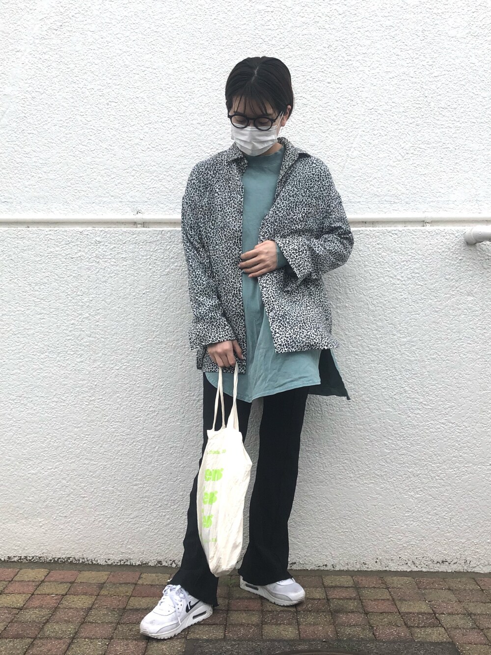 レオパのシャツがカワイイ👔 最近はちょっとそこまで(スーパー)なのでとにかく楽ちんなコーデが多いです😂 ロンTだけだとまだ寒かったのでシャツを羽織りました◎ちょうどよかった◎ 柄シャツだと羽織っても暑くなったらタスキ掛けしてもいいから便利ですね🤸♀️