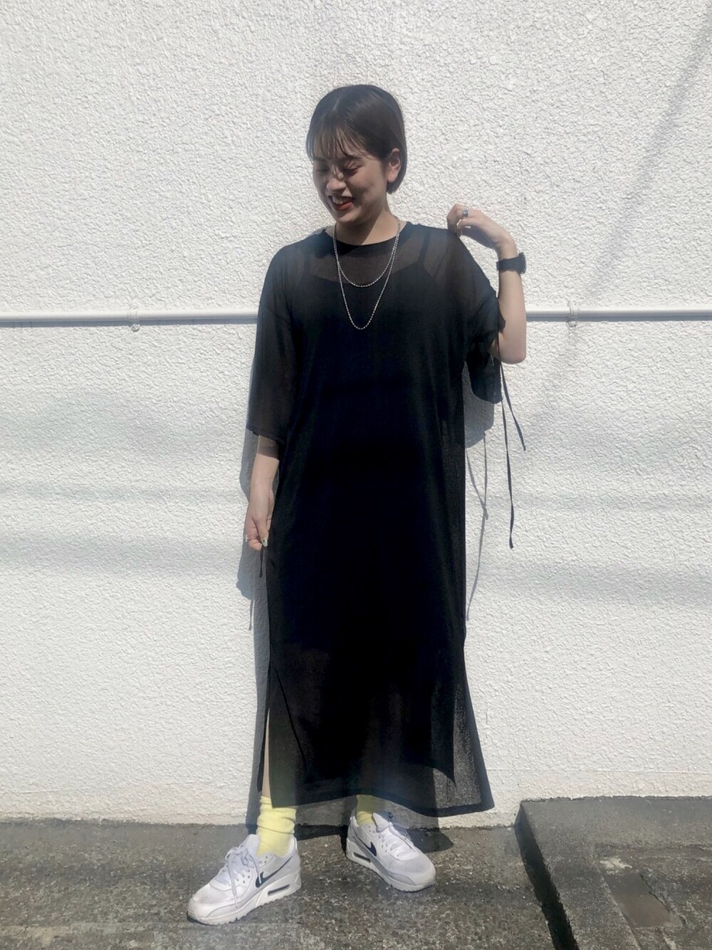 1枚でサラッときれるシアーワンピ🖤 スリットも深すぎないから安心🥺💖