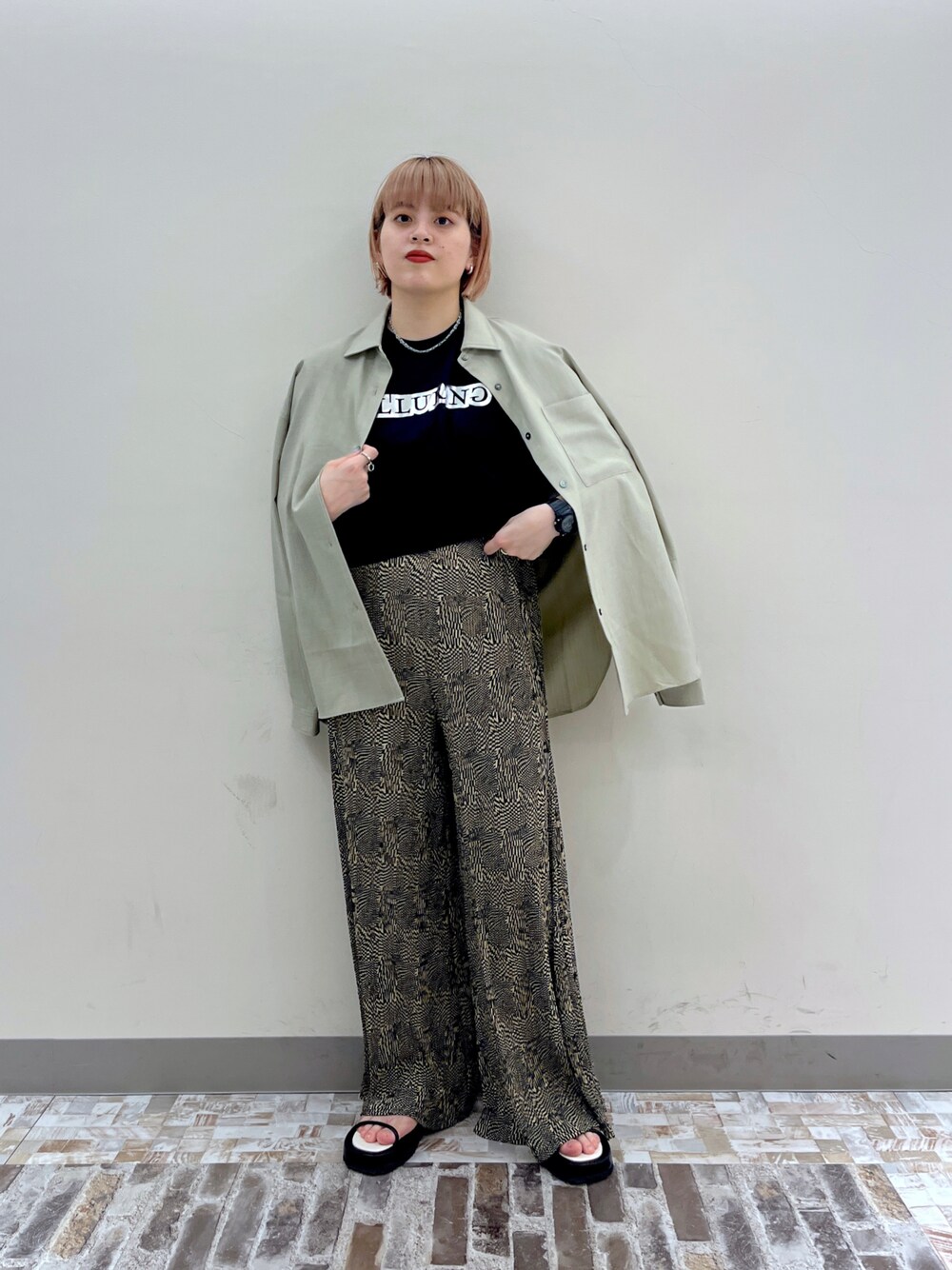 私の激推しパンツ🔥🫶🏻💚 細かいプリーツが入っていて落ち感が綺麗なワイドパンツ✨✨ 裏地もついていないので、肌にも張り付かず、またウエストもゴムなので夏でもストレスフリー✨!! カラーものとももちろん◎ベージュ系でまとめてワントーンも可愛いです♡