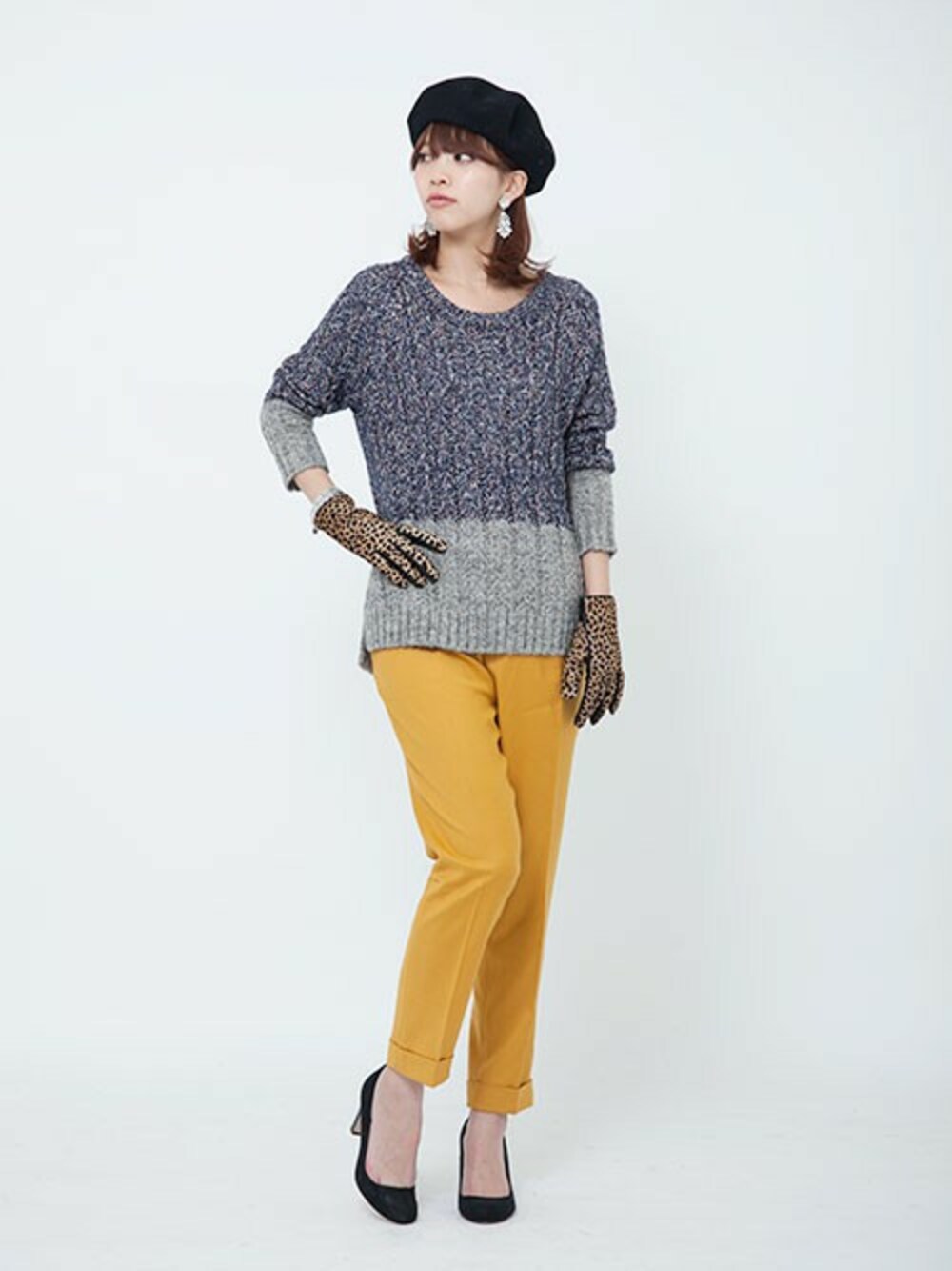 fukudaのニット/セーター「UR MIXブロッキングプルオーバー」を使ったコーディネート