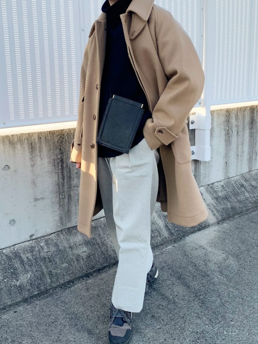 冬アウター着回しチャレンジ3回目 シンプルなコーデでもコートの中に小物入れてあげるとええ感じに一癖出ますね🤤✨