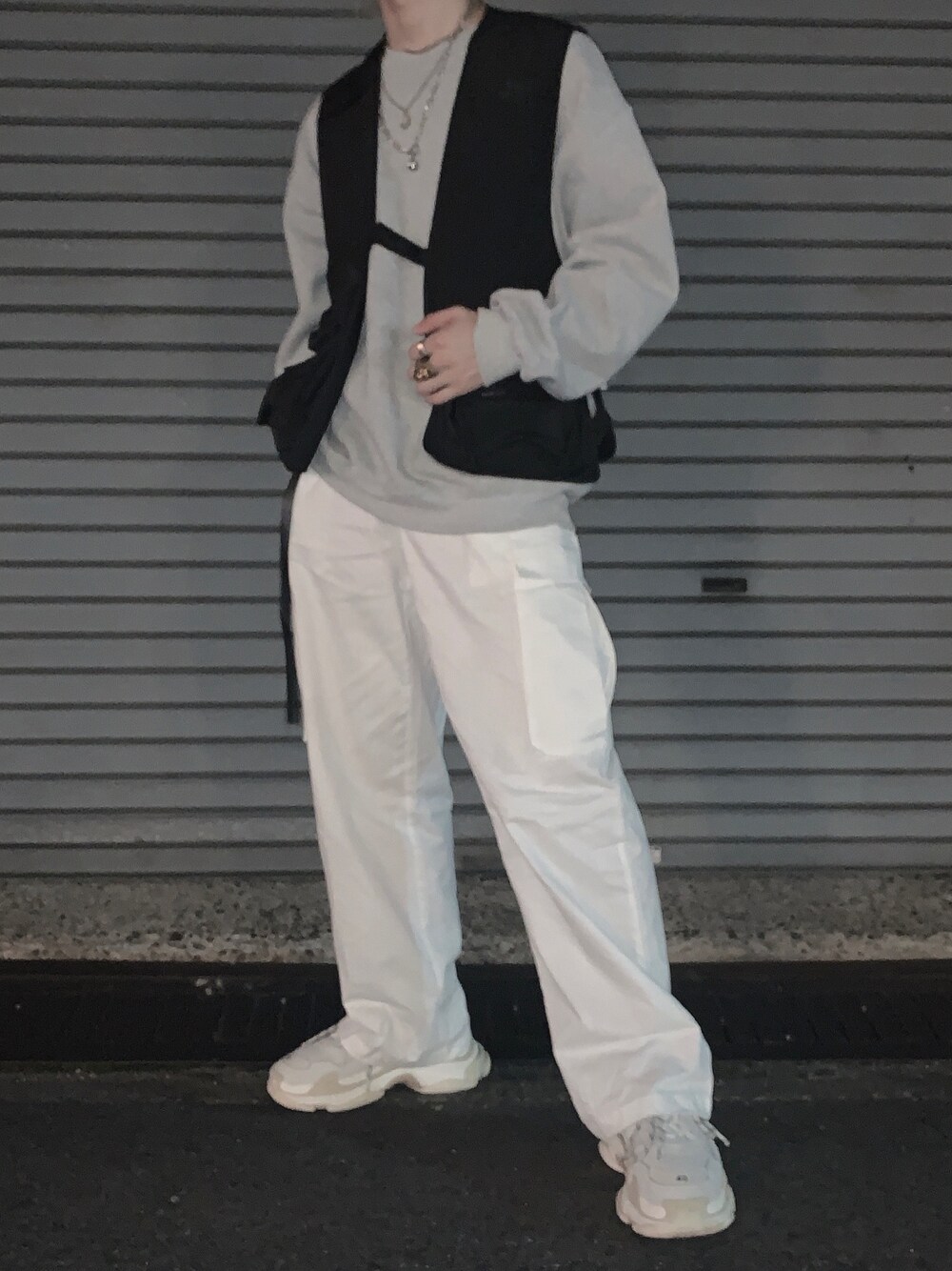 黒のベストに白のカーゴパンツがバッチグーの組み合わせです😊 このコーデTikTokで出してるので良かったらみてね✌️ TikTokID→fukui_0608