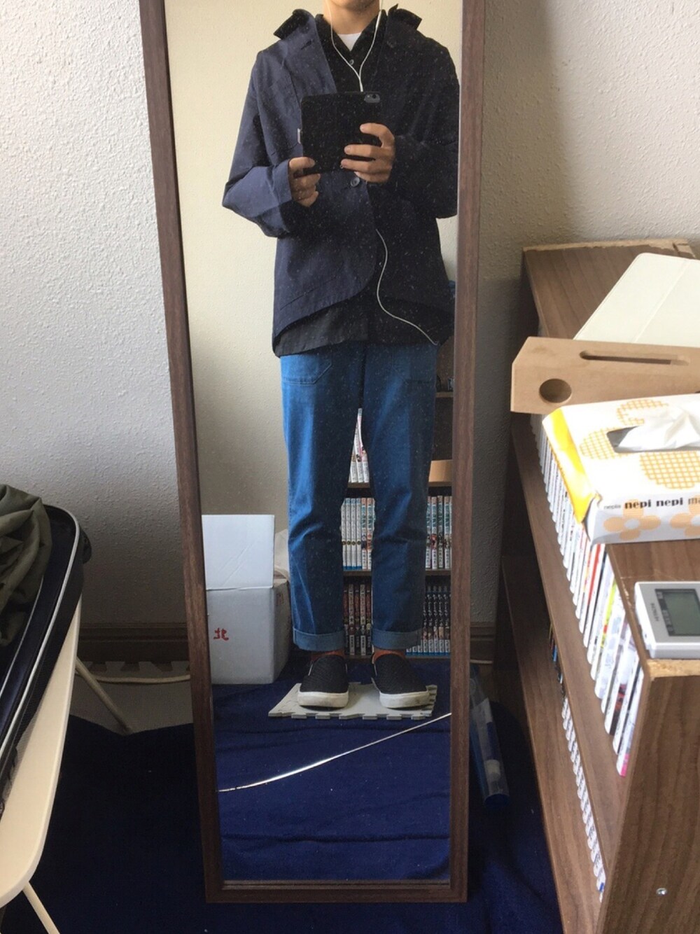 けんのパンツ「(GU)ストレッチデニムイージーテーパードパンツ(9分丈)」を使ったコーディネート