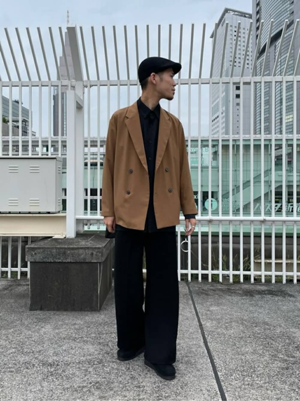 ブラック×ブラウン◎ オールブラックにブラウンのジャケットを羽織るだけでもおしゃれに着こなせます。 ブラック+1色加えるだけでも雰囲気がガラッと変わるのでオススメです。