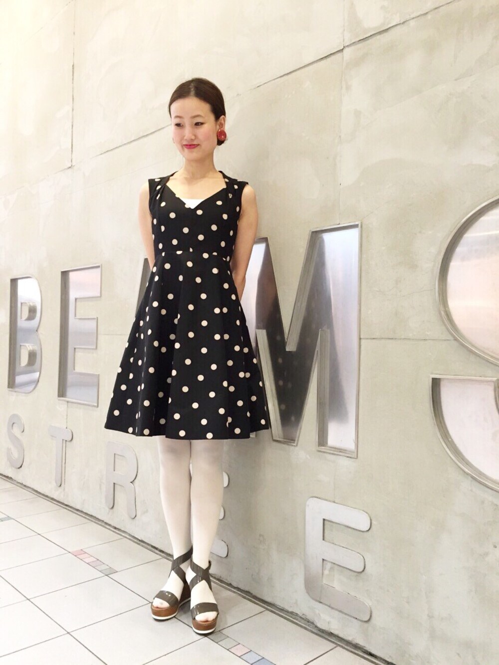 今期はドットが気になります。シルエットがキレイなワンピースは1枚で着るのがオススメです♡