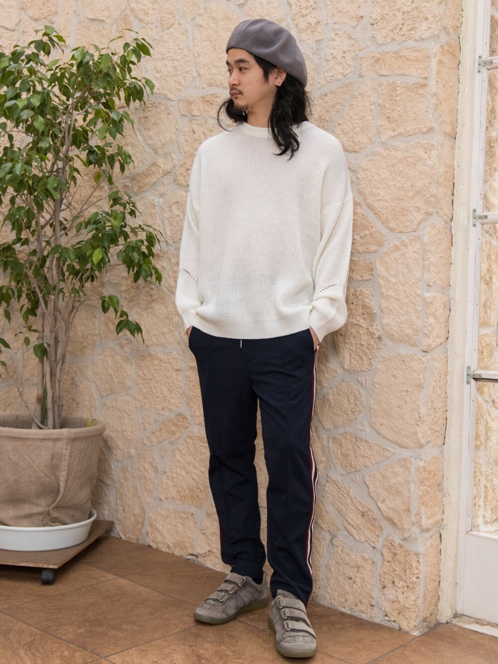 パンツはまだ入荷していないアイテムですが、WEGOの商品です。 シンプルなスタイリングもビッグニットやラインパンツを使えば旬な空気感を出せますよ!