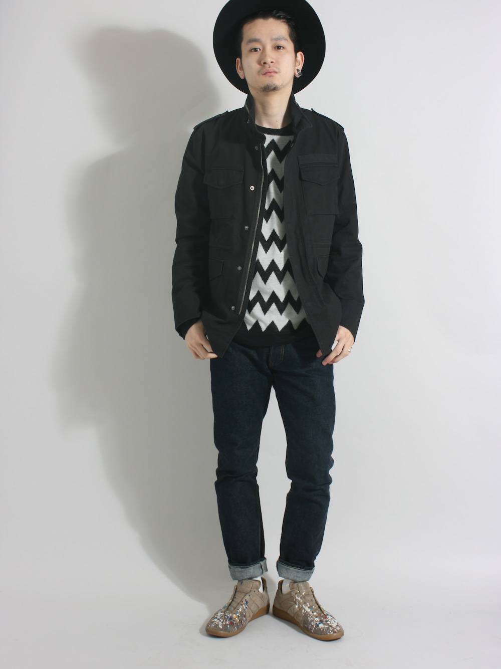 着用コーデ:13件ミリタリーアウターは男臭く濃紺のデニムをあわせたい気分。 インナーのジグザグニットはWEGOの新作薄手で、これからも活躍しそう。 デニムが柔らかくいい感じに育ったのが嬉しい。