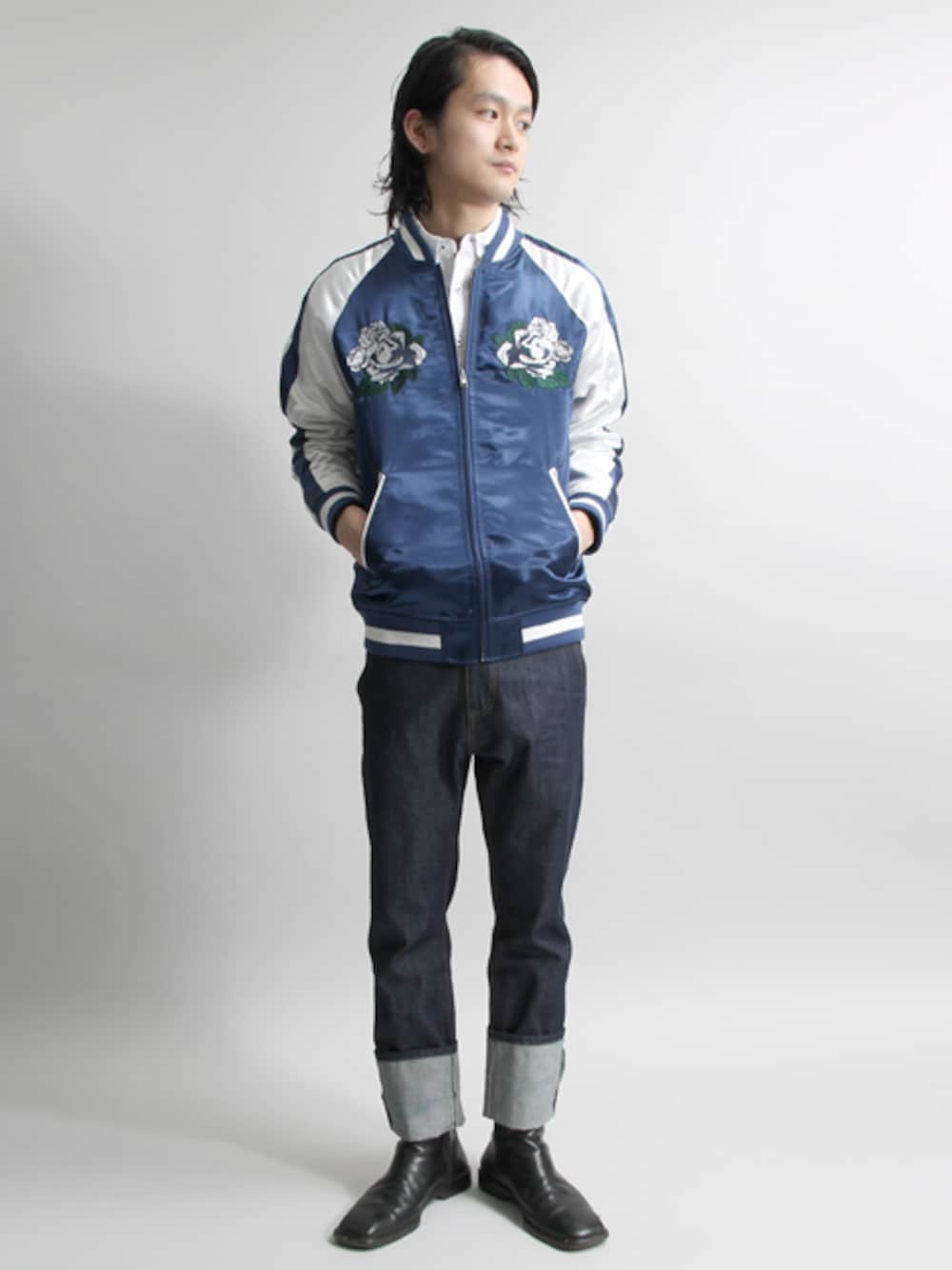 スカジャンは男臭くも着たいけどあえて綺麗に合わせて差別化を
