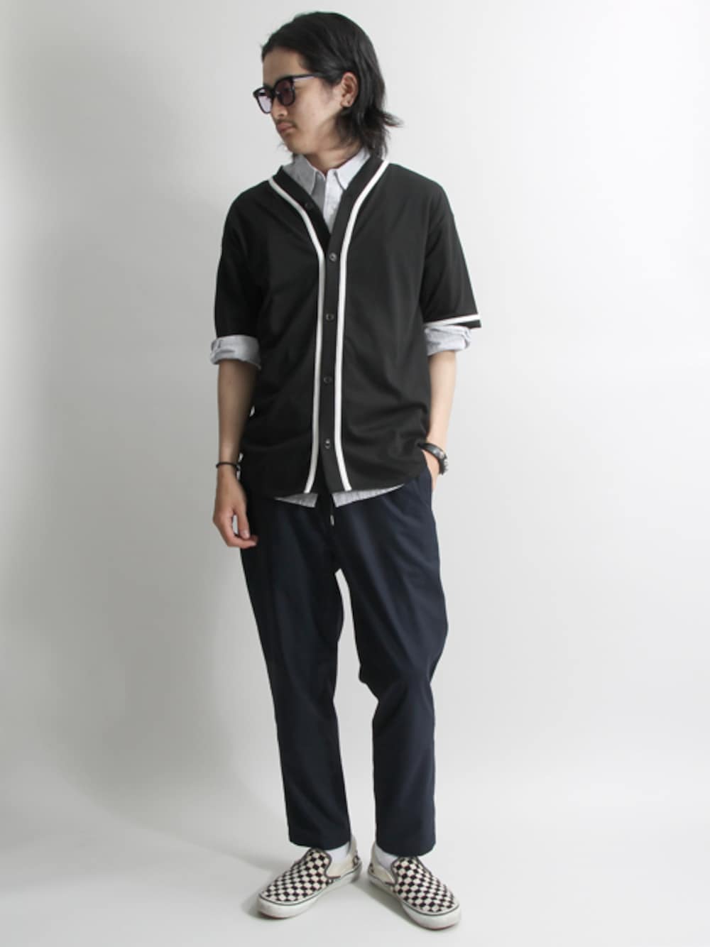 シャツinシャツのスタイリング 違ったシャツレイヤードで見え方もだいぶ変わります。 小物・パンツもWEGO