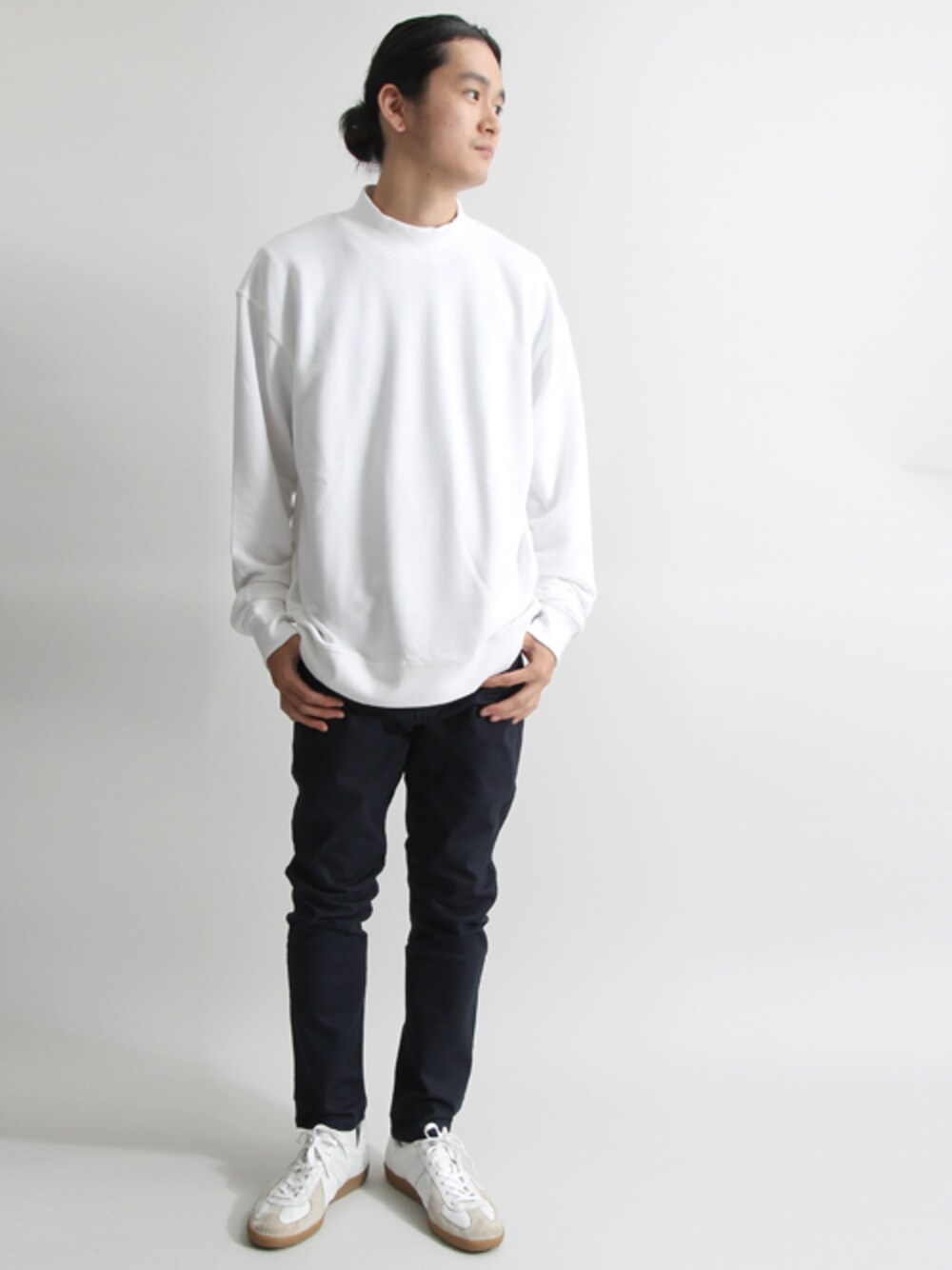 シンプルにモノトーンコーデ ハイネックのスウェットがシンプル過ぎずイイ
