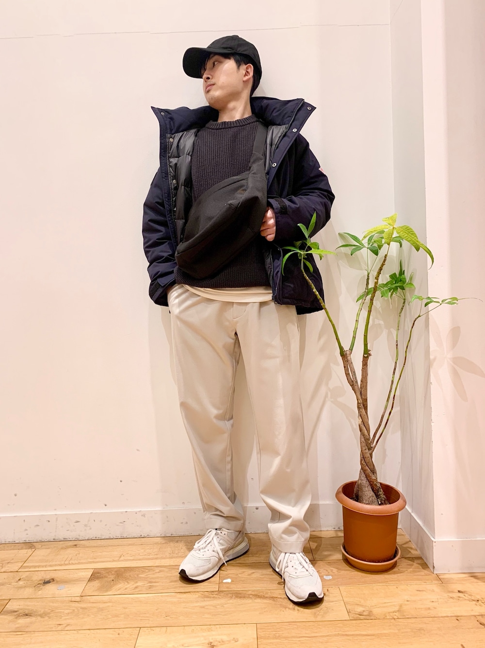 今回はこちらのパンツのご紹介です。 冬場にあたたかく穿けるイージーパンツ ・起毛生地であたたかい。ストレッチ入りで穿きやすい仕上がり ・総ゴムのイージパンツ仕様 ・ほどよいテーパードシルエットでもたつかない コーディネート お休みの日のカジュアルパンツとして活躍してくれます。トラウザーなのでカジュアルなトップスからきれいめなトップスまで幅広く合わせられます。裾幅はほどよく広いためすっきりとした革靴からボリュームのあるシューズまで相性良く合わせていただけます。 おすすめポイント 夏の人気商品リネンライクイージートラウザーを冬素材に落とし込んた一本です。