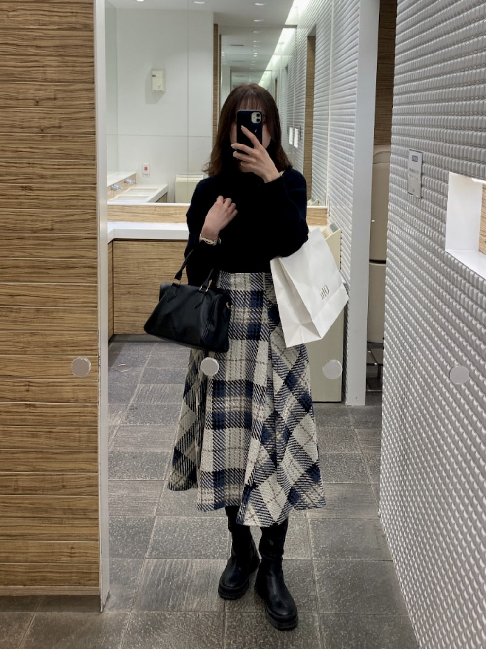 大好きな方に会いに名古屋まで🍤🤍  スナのロービングチェックスカートを主役に黒でまとめた😾🖤