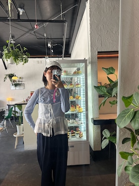 #01 insta⇨m._314omy 色を使ったコーデが好きです🦆 特にキャップを使ったコーデ得意です🙂↕️❕